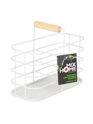 Подставка для столовых приборов с дер.ручкой 19х9х16см, цв.белый