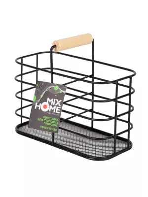 Подставка для столовых приборов с дер.ручкой 19х9х16см, цв.черный