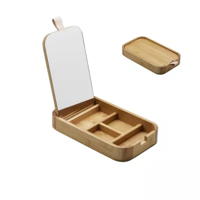 Шкатулка для украшений с зеркалом (бамбук) 25,2х14х3,5см
