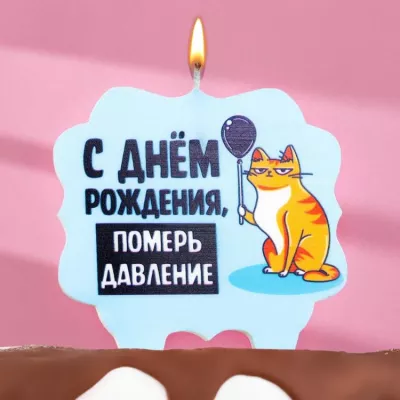 Свеча для торта "С днем рождения, померь давление" 8см, цв.голубой