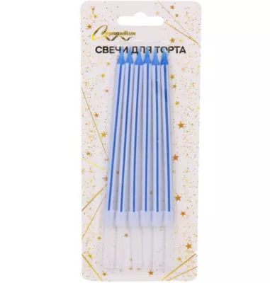 "Праздничное настроение" Свечи для торта с подставками 6шт, цв.синий