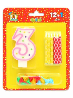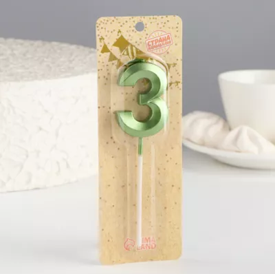"Грань" Свечи для торта "Цифра 3", цв.изумруд