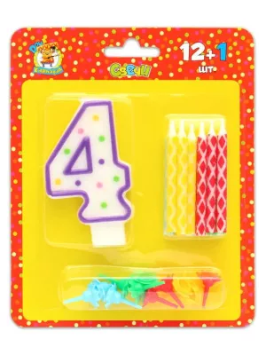 "Счастливый праздник" Свечи для торта с подставками 10шт, цв.фиолетовый