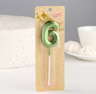 "Грань" Свечи для торта "Цифра 6", цв.изумруд