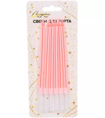 "Счастливый праздник" Свечи для торта с подставками 10шт, цв.малиновый