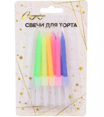"Радужный блеск" Свечи для торта с подставками 10шт