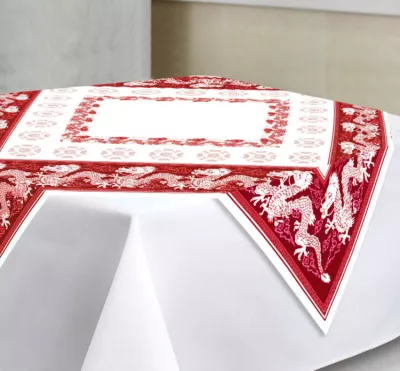 Комплект столовый "Дракон, красный": скатерть 180х150см, наперон 94х94см