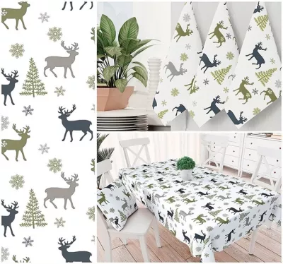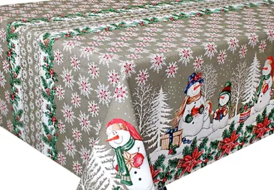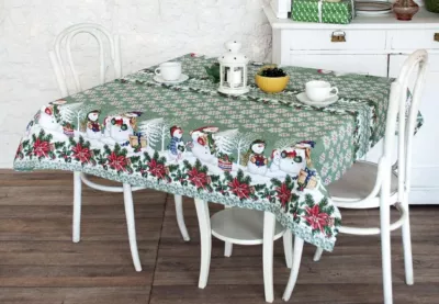 Скатерть "Снеговики" 145x220см, цв.зеленый