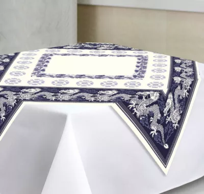 Комплект столовый "Дракон, синий": скатерть 180х150см, наперон 94х94см