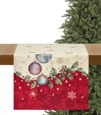 "Елочные украшения. Красный бордюр" Скатерть круглая d-140см