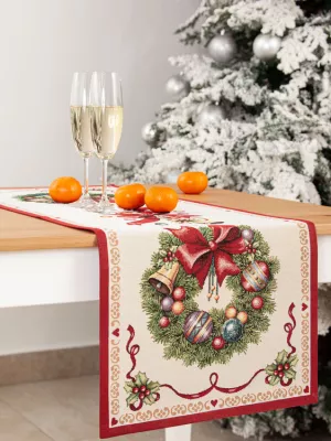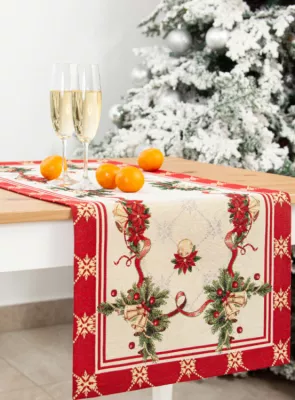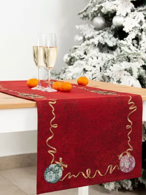 "Венок из нобилиса" Дорожка на стол 44х140см, цв.красный