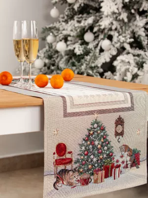 "Волшебство Рождества" Скатерть 140х300см, цв.серебряный