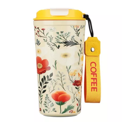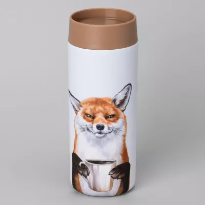 Термокружка "КОФЕ-СЮДА" 360мл, цв.белый