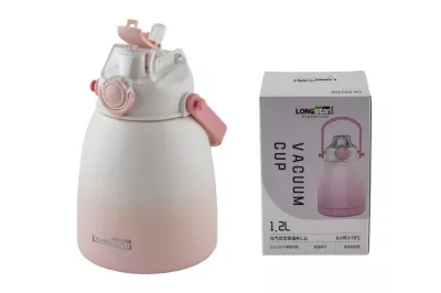 Термос стальной 1,2л с замком и ручкой, цв.розовый