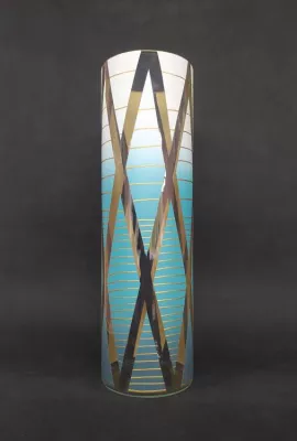 "Полосы" Ваза-цилиндр 50см, цв.голубой