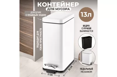 "El Casa" Контейнер для мусора с педалью 13л, цв.белый