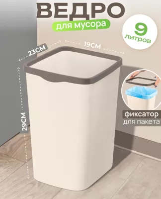 "El Casa" Ведро для мусора с фиксатором "Тандем" 9л, цв.слоновая кость