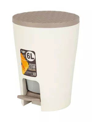Ведро для мусора с педалью 6л, цв.белый и коричневый