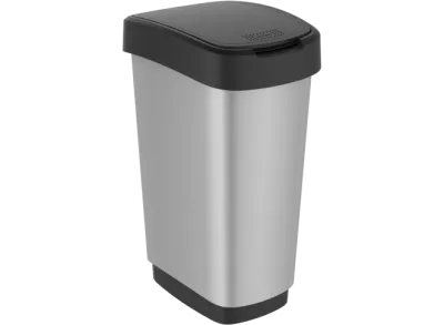 TWIST Ведро для мусора 50л, цв.серебро/черный