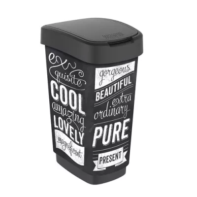 TWIST Ведро для мусора 50л, цв.черный с принтом