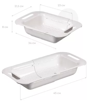 "Bergamo" Дуршлаг раздвижной, прямоугол., 21,5х33,5-45х8см, цв.белый