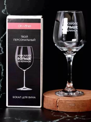 "Oh vine!" Бокал для вина "Никаких больше вечеринок" 400мл в п.у.