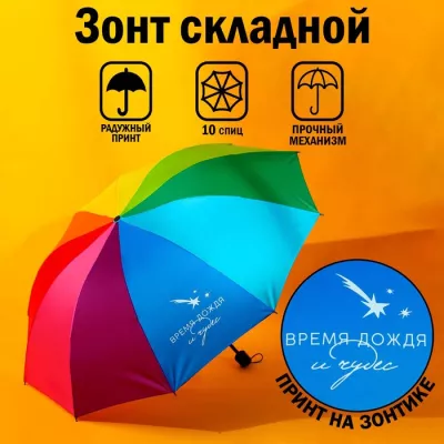 Зонт женский "Время дождя и чудес", трость, механика 71х10см