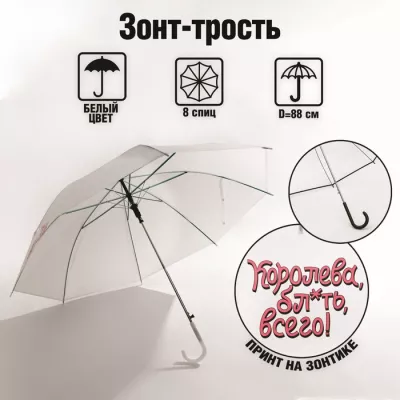 Зонт женский "Белое, красное и я не отстаю", трость, механика 71х10см