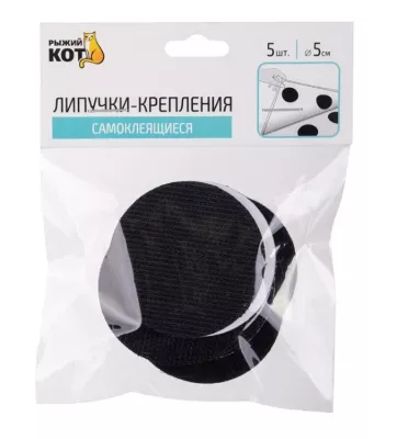 Набор липучек самоклеящихся, круглых 5шт. 5см, цв.черный