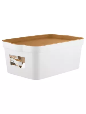 "Wood" Корзина для хранения с крышкой 2,3л, 21,1х14,1х11см, цв.белый, корич.