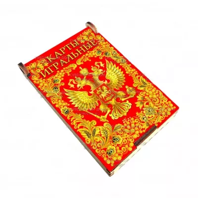Карты игральные "Герб России. Хохлома" красный фон 10х7х2,5см