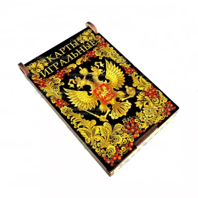 Карты игральные "Герб России. Хохлома" черный фон 10х7х2,5см