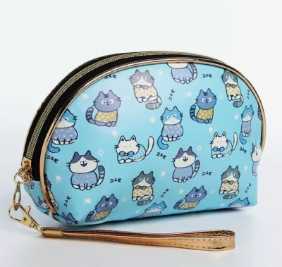 Косметичка женская "Коты" 20х6х13см, цв.голубой