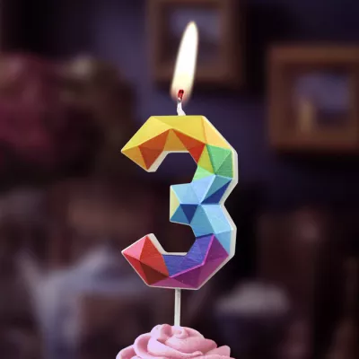 "Разноцветные грани" Свечи для торта "Цифра 3"
