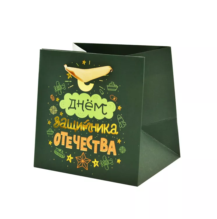"23 февраля" Пакет бумажный "С днём защитника" 15х15х12см
