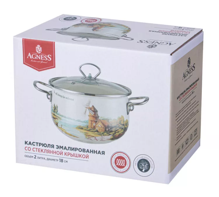 "Agness" Family House" Кастрюля эмалированная 2л, 18см