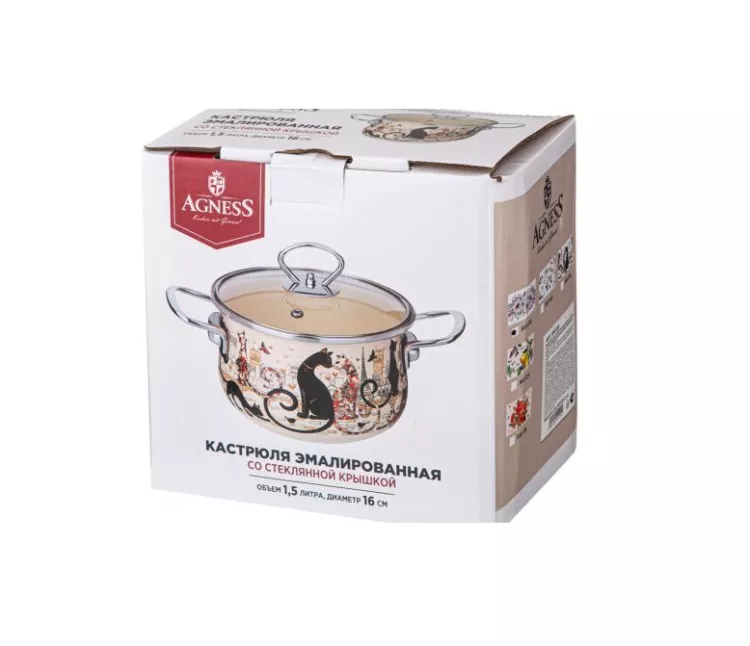 "Agness" Парижские коты" Кастрюля эмалированная 1,5л, 16см