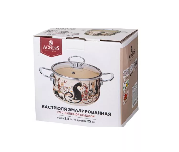 "Agness" Парижские коты" Кастрюля эмалированная 2,8л, 20см