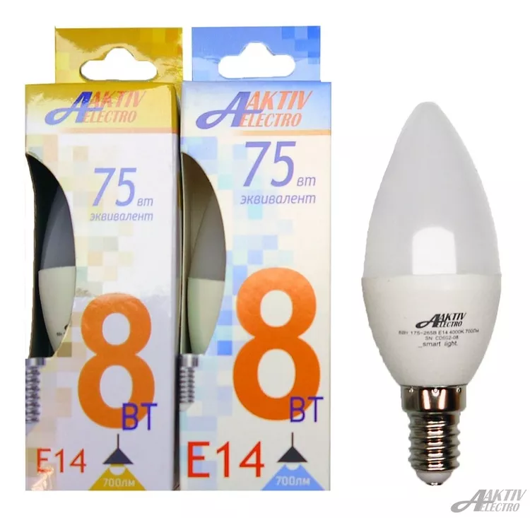 AKTIV ELECTRO Лампа светодиодная свеча LED-А Regular 8Вт Е14 3000К