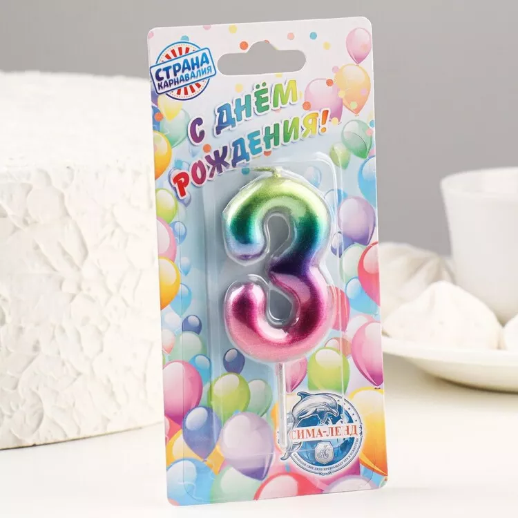 "Акварель" Свечи для торта "Цифра 3" 6см