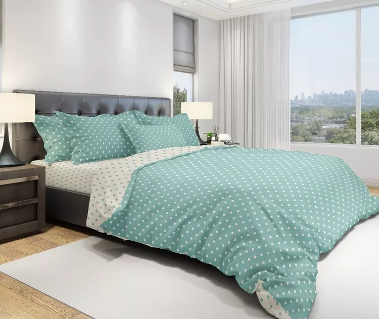 "Amore Mio" Комплект постельного белья "Dots" семейный, цв.бирюзовый, 70х70см, бязь