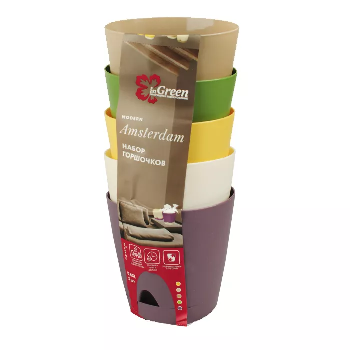 "AMSTERDAM" Набор горшков с прикорневым поливом 5шт d=11см, 0,65л