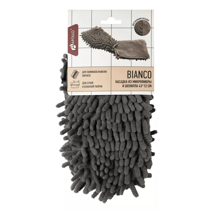"Apollo" Bianco" Насадка для 2-х сторонней швабры из микрофибры 43х12см, цв.серый