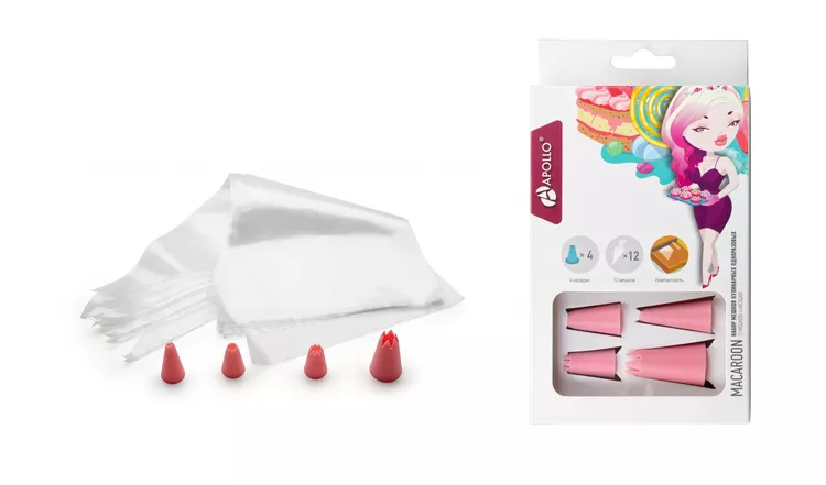 "Apollo" Macaroon" Набор кондитерских мешков 12шт. с насадками 4шт.
