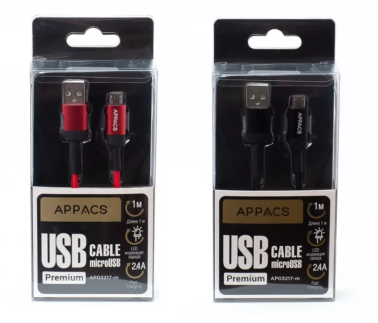 APPACS Кабель microUSB 5V/2.4A 1 метр
