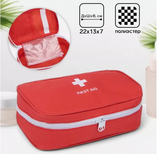 Аптечка дорожная на молнии с ручкой 22х13х7см, цв.красный