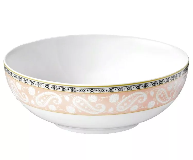 Его можно использовать не только для подачи салата, но и в качестве суповой тарелки. Круговая розовая деколь с классическим рисунком придает салатнику респекта...
