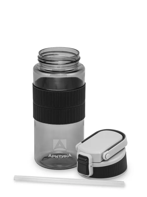 "Арктика" Бутылка для напитков с трубочкой 550мл, цв.черный глянец