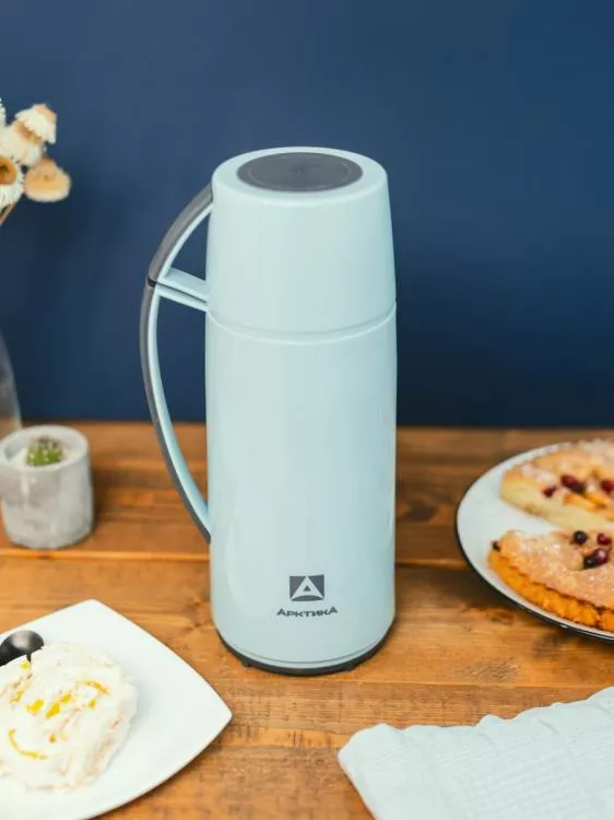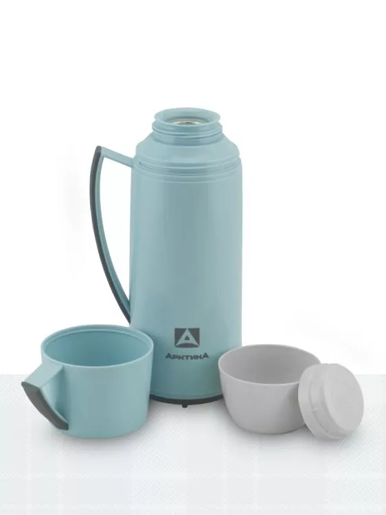 "Арктика" Термос со стеклянной колбой, узким горлом 1л, цв.голубой