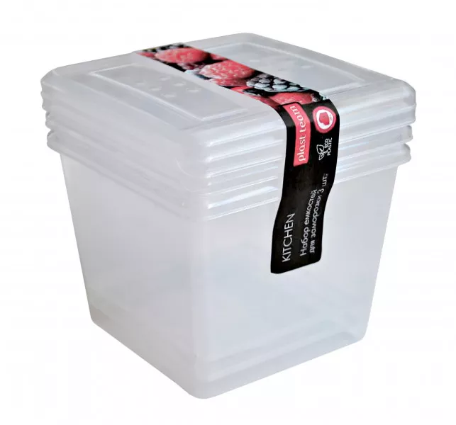 "Asti" Набор контейнеров пластик для заморозки 3ш. 1л квад 12,4х12,4х13,5см